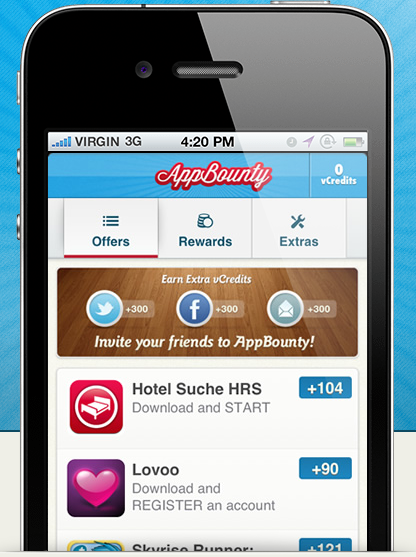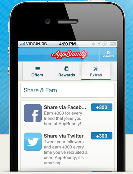 AppBounty is an iPhone service developed by Advertile Mobile that rewards users for downloading iPhone apps and completing offers. This web app runs through Safari on iOS devices, and is simple to sign up for. For every app downloaded or offer completed, users are given points. These points (aka vCredits) can be exchanged for iTunes and Amazon gift cards.