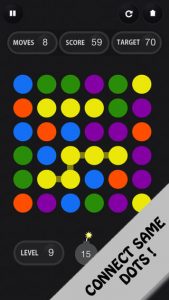 The mechanics of Best Dots are pretty straightforward. You’ll need to drag the various dots around the screen, linking chains of dots of the same color together. Once you reach the “dot goal” needed to clear a level, you can move forward.