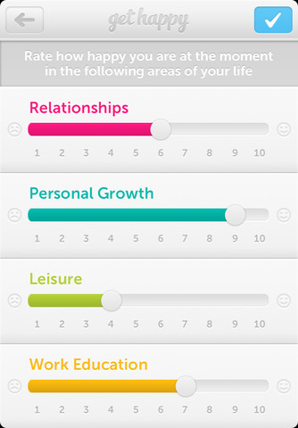 After you select how you feel about a bunch of different areas of your life, you will receive a list of personalized tips, suggestions, and recommendations to improve your life satisfaction. Areas that you need to rate include relationships, personal growth, work education, and leisure.